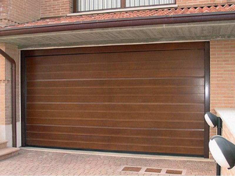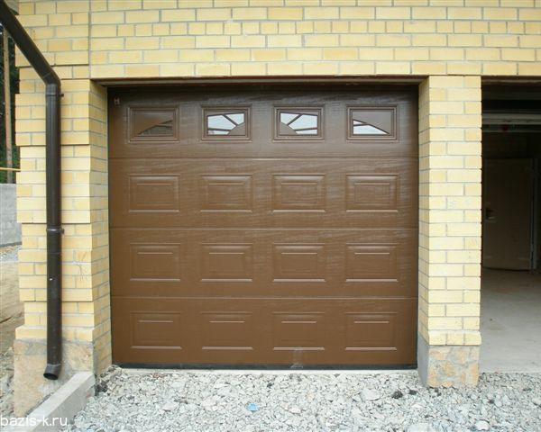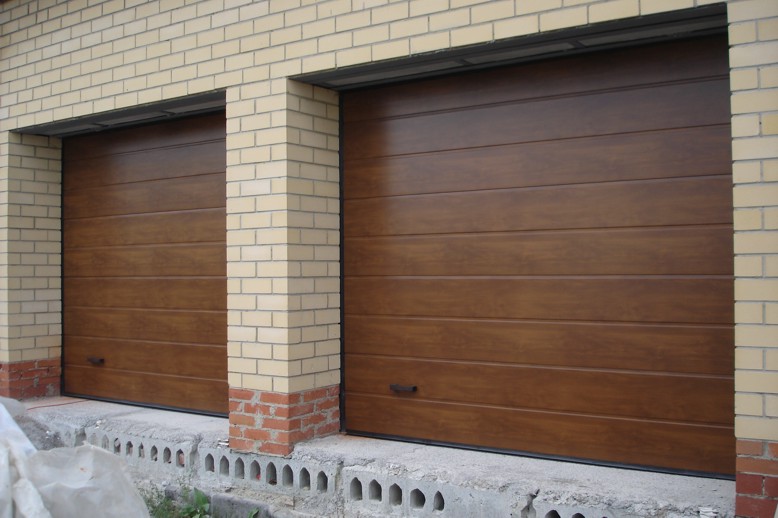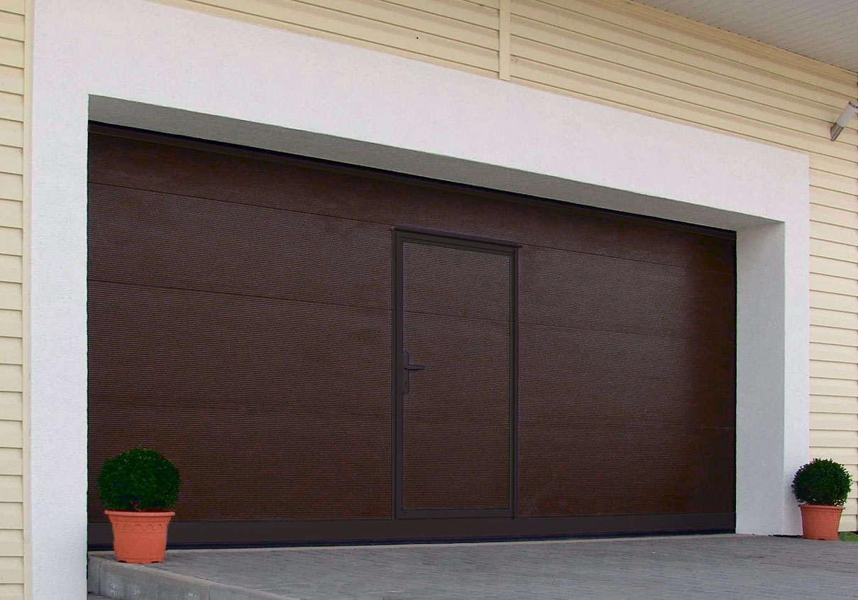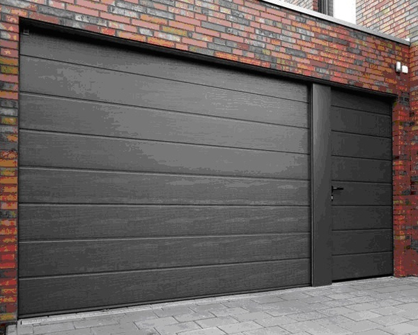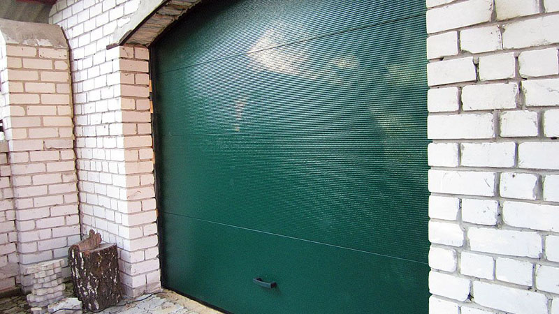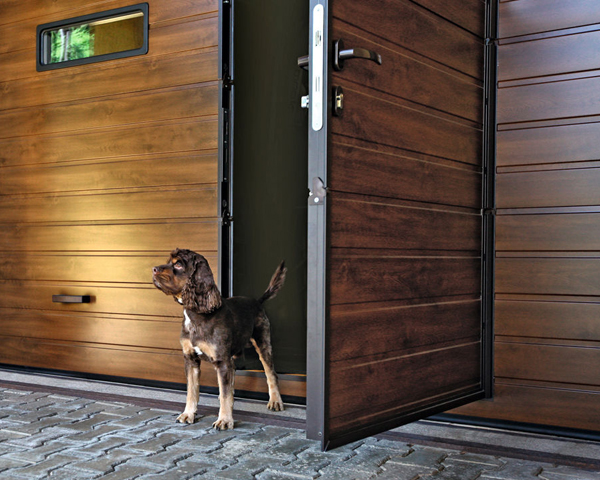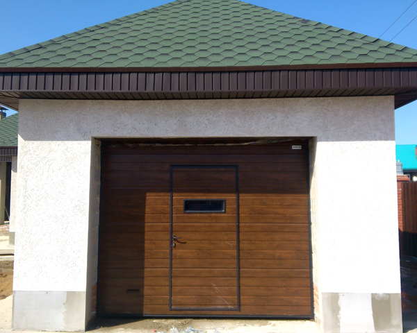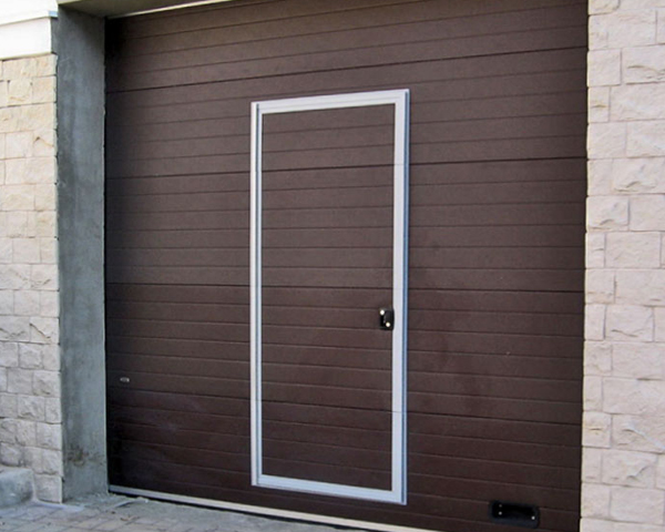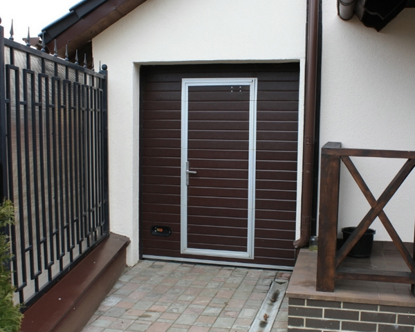 Часто секционные ворота делают с калиткой, если нет отдельного входа в гараж. Без нее не обойтись. Если вдруг будет перебой напряжения или отключат свет, в гараж вы сможете зайти только через калитку, чтобы разблокировать ворота и открыть их вручную.