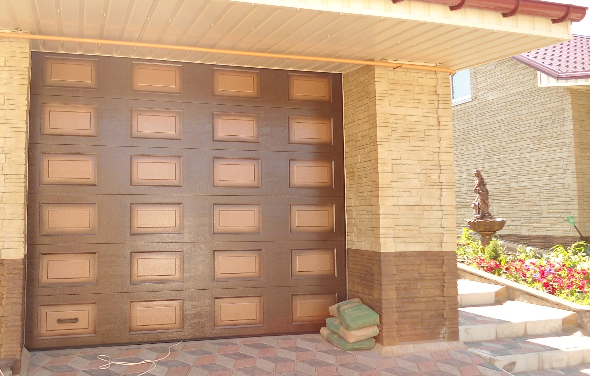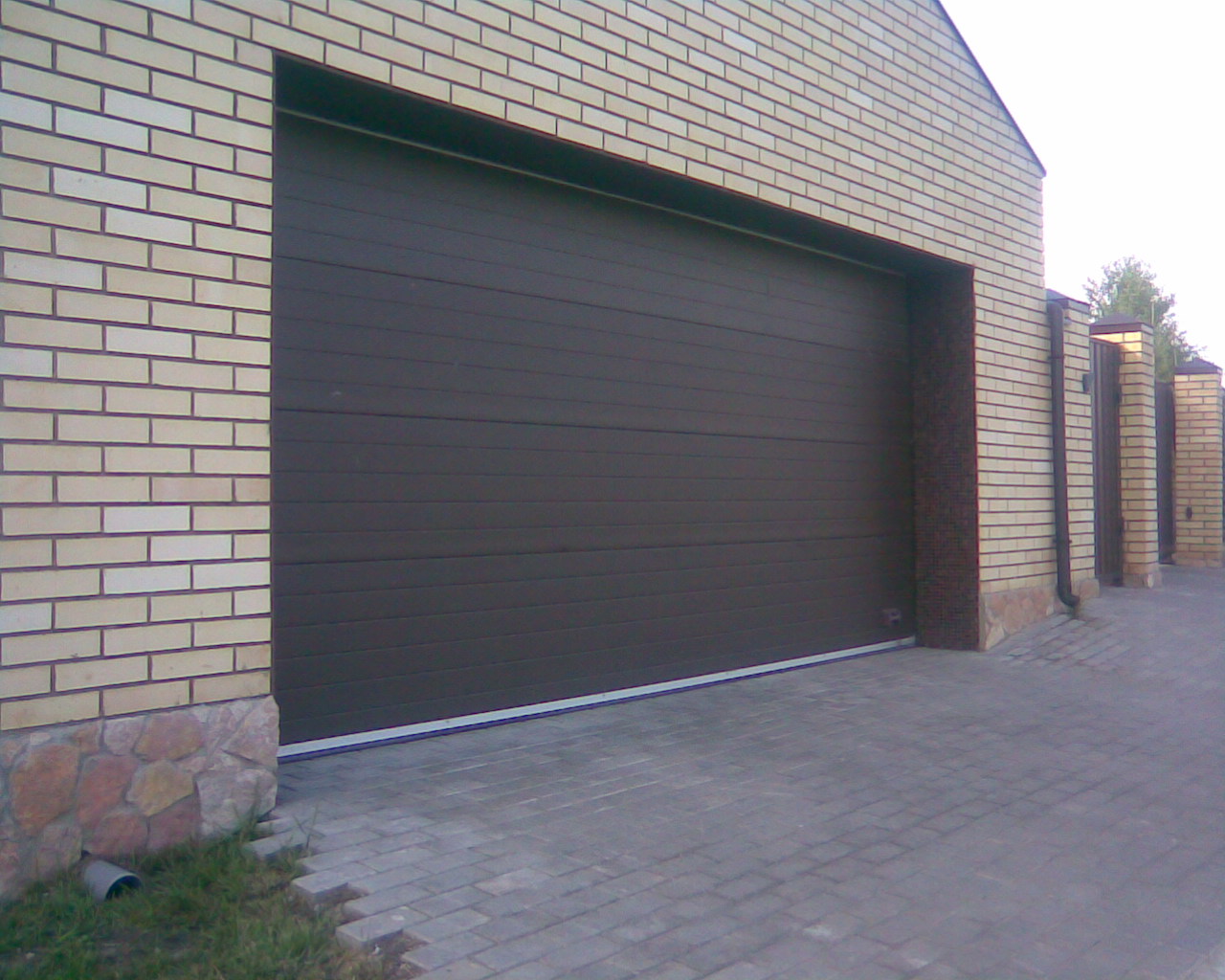 Обратились в компанию КАСКАДЪ с просьбой расширить гаражный проем на 20 см и установить ворота. Кирпич обрезали аккуратно, укрепили уголком.
